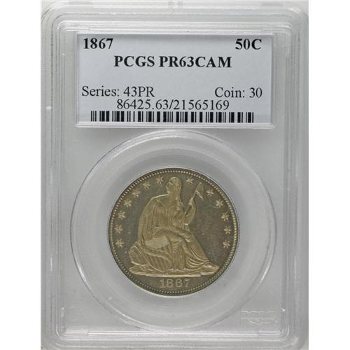1867 50C PR63 Cameo PCGS. This is a gorgeous Select Pr