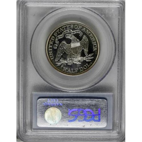 <B>1867 50C PR63 Cameo PCGS.</B></I> This is an early With Motto issue of the Liberty Seated series, and is quite elusive as such, especially as a proof. Both sides are predominately brilliant with just the slightest golden toning. Only 625 were coined, and of that total, few have survived as nice or as attractive as this one. Population: 7 in 63 Cameo, 15 finer (11/07). <BR><I>From The Kallenberg #1 PCGS Registry Set Of Proof Half Dollars.</B></I><BR><BR><b>Shipping:</b> Coins & Currency (<a target="_blank" href="http://www.heritageauctions.com/common/shipping.php">view shipping information</a>)