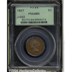 1867[5C] Five Cents, Judd-563, Pollock-624, High R.7, PR64 Brown PCGS.