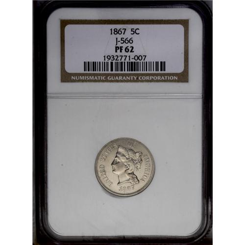 1867 5C Five Cents, Judd-566, Pollock-627, Low R.6, PR