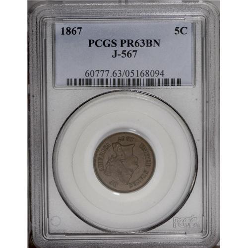 1867 5C Five Cents, Judd-567, Pollock-628, Low R.7, PR 1867[5C] Five Cents, Judd-567, Pollock-628, L