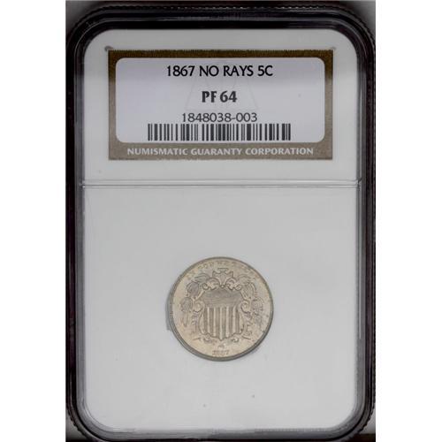 1867 5C No Rays PR64 NGC. A deeply mirrored example wi 1867[5C] No Rays PR64 NGC.