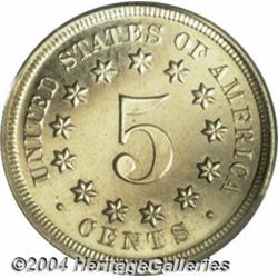<table><tr><td><TABLE cellSpacing=0 cellPadding=0 width="100%" bgColor=#000000 border=0><TBODY> <TR><TD width="100%"><TABLE cellSpacing=1 cellPadding=3 width="100%" border=0><TBODY><TR><TD width="100%" bgColor=#79735c><FONT face=arial color=#ffffff size=3><B>Description</B> </FONT></TD></TR><TR><TD width="100%" bgColor=#ffffff><FONT face=arial size=2><B>1867 5C No Rays PR65 Cameo PCGS.</B></I> Second year of issue for the Shield nickel, the design was modified in 1867 by eliminating the rays on the reverse in order to facilitate better striking. Brilliant throughout, the fields show great depth of mirrored reflectivity and the devices have a noticeable portion of mint frost which gives the coin a noticeable cameo contrast. Population: 16 in 65, 3 finer (10/03). </FONT></TD></TR></TBODY></TABLE></TD></TR></TBODY></TABLE><BR><A name=PricesRealized></A><TABLE cellSpacing=0 cellPadding=0 width="100%" bgColor=#000000 border=0><TBODY><TR><TD width="100%"><TABLE cellSpacing=1 cellPadding=3 width="100%" border=0><TBODY><TR><TD width="100%" bgColor=#79735c><A name=PR><FONT face=arial color=#ffffff size=3><B>Previous Prices from Heritage Auctions</B> </FONT></A></TD></TR><TR><TD bgColor=#f6f6ed><TABLE cellSpacing=0 cellPadding=0 width="100%" border=1><TBODY><TR><TD align=middle width="33%"><B>Date</B></TD><TD align=middle width="33%"><B>Service</B></TD><TD align=middle width="33%"><B>Price</B></TD></TR><TR bgColor=whitesmoke><TD width="33%"><B>11/07/2003</B></TD><TD width="33%">PCGS</TD><TD width="33%">$3,392.50</TD></TR><TR bgColor=whitesmoke><TD width="33%"><B>01/11/2003</B></TD><TD width="33%">PCGS</TD><TD width="33%">$2,530.00</TD></TR><TR bgColor=whitesmoke><TD width="33%"><B>01/13/2002</B></TD><TD width="33%">NGC</TD><TD width="33%">$2,300.00</TD></TR></TBODY></TABLE></TD></TR><TR><TD bgColor=#ffffff><FONT face=arial size=1 ?>PLEASE NOTE: All prices realized reflect the final hammer price PLUS the buyer's premium in auctions that charge a buyer's premium. Each item has a notation at the top of the listing indicating whether that lot included a buyer's premium. Example: A item that sells with a final hammer price of $100 and a 20% buyer's premium will display with a price realized of $120. All information listed is intended to be as accurate as possible, but errors are possible. Please use this guide carefully and inform us of any inaccuracies. </FONT></TD></TR></TBODY></TABLE></TD></TR></TBODY></TABLE><BR><TABLE cellSpacing=0 cellPadding=0 width="100%" bgColor=#000000 border=0><TBODY><TR><TD width="100%"><TABLE cellSpacing=1 cellPadding=3 width="100%" border=0><TBODY><TR><TD width="100%" bgColor=#79735c colSpan=6><FONT face=arial color=#ffffff size=3><B>Price Guide*</B> </FONT></TD></TR><TR bgColor=#f6f6ed><TD align=middle><B>Grade</B> </TD><TD align=middle><B>Coin World<BR>(Trends)</B> </TD><TD align=middle><B>Numismedia<BR>Retail</B> </TD><TD align=middle><B>Numismedia<BR>Wholesale</B> </TD><TD align=middle><B>Coin<BR>Universe</B> </TD><TD align=middle><B>Heritage<BR>Value Index</B> </TD></TR><TR bgColor=#ffffff><TD align=middle>64</TD><TD align=right>---</TD><TD align=right>---</TD><TD align=right>---</TD><TD align=right>---</TD><TD align=right>$611.25</TD></TR><TR style="FONT-WEIGHT: bold" bgColor=#cccfdd><TD align=middle>65</TD><TD align=right>---</TD><TD align=right>---</TD><TD align=right>---</TD><TD align=right>---</TD><TD align=right>$2,610.50</TD></TR><TR bgColor=#ffffff><TD align=middle>66</TD><TD align=right>---</TD><TD align=right>---</TD><TD align=right>---</TD><TD align=right>$7,000.00</TD><TD align=right>$7,337.50</TD></TR><TR bgColor=#ffffff><TD colSpan=6><FONT size=1>*All information listed is intended to be as accurate as possible, but errors are possible. No item may be returned or refused based on this information which is provided as a service to our customers. You should contact each pricing source directly to determine the accuracy of this information. </FONT></TD></TR></TBODY></TABLE></TD></TR></TBODY></TABLE><BR><TABLE cellSpacing=0 cellPadding=0 width="100%" bgColor=#000000 border=0><TBODY><TR><TD width="100%"><TABLE cellSpacing=1 cellPadding=3 width="100%" border=0><TBODY><TR><TD width="100%" bgColor=#79735c><FONT face=arial color=#ffffff size=3><B>Population Guide</B> </FONT></TD></TR><TR bgColor=#ffffff><TD align=middle><!-- Begin Output of Population Grid--><TABLE cellSpacing=0 cellPadding=0 width="100%" border=0><TBODY><TR><TD vAlign=center><TABLE cellSpacing=0 width="100%" border=1 cellsadding="3"><TBODY><TR><TD vAlign=center><TABLE cellSpacing=0 cellPadding=3 width="100%" border=1><TBODY><TR><TD vAlign=center align=middle bgColor=#f0f1e8 colSpan=2 <CENTER><FONT face=Arial size=2><B>PCGS Pop </B></FONT><CENTER></CENTER></TD><TD vAlign=center align=middle bgColor=#f0f1e8 colSpan=2><CENTER><FONT face=Arial size=2><B>NGC Pop</B></CENTER></FONT></TD></TR><TR><TD vAlign=center><FONT face=Arial size=2>(65)</FONT> </TD><TD vAlign=center align=right><FONT face=Arial size=2>22</FONT> </TD><TD vAlign=center><FONT face=Arial size=2>(65)</FONT> </TD><TD vAlign=center align=right><FONT face=Arial size=2>4</FONT> </TD></TR><TR><TD vAlign=center><FONT face=Arial size=2>(>65)</FONT> </TD><TD vAlign=center align=right><FONT face=Arial size=2>5</FONT> </TD><TD vAlign=center><FONT face=Arial size=2>(>65)</FONT> </TD><TD vAlign=center align=right><FONT face=Arial size=2>7</FONT> </TD></TR></TBODY></TABLE></TD></TR></TBODY></TABLE></TD></TR></TBODY></TABLE><!-- End Output of Population Grid--></TD></TR></TBODY></TABLE></TD></TR></TBODY></TABLE><BR><TABLE cellSpacing=0 cellPadding=0 width="100%" bgColor=#000000 border=0><TBODY><TR> <font color='#000000'><span style='background-color: #FFFFFF'><td bgcolor='#FFFFFE'> Important notice: Heritage usually auctions material at the rate of 200-250 lots per hour. On some occasions eBay Live bid software or the Internet may not be able to keep up with the pace of the auction. We recommend placing a realistic absentee bid now as insurance to