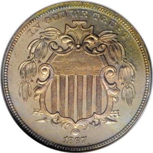 <B>No Rays Shield Nickel Set PR65 NGC.</B></I> The set is housed in prior generation NGC holders with consecutive serial numbers. All No Rays dates from 1867 through 1883 are present, and this included the proof-only 1877, 1878, and 1879/8. The set contains:<BR><B><BR>1867 No Rays PR65 NGC.</B></I> Honey-gold and ice-blue grace this flashy and precisely struck Gem. Both sides are void of marks, although the reverse has a few flecks of powdery debris.<BR><B><BR>1868 PR65 NGC.</B></I> The date is lightly repunched. A needle-sharp and undisturbed Gem that displays medium apricot and cream-gray toning. The Guide Book reports a mintage of only 600+ pieces.<BR><B><BR>1869 PR65 NGC.</B></I> A caramel-gold Gem with peripheral sky-blue and lime tints. Sharply struck and satiny, and the surfaces exhibit only microscopic carbon.<BR><B><BR>1870 PR65 NGC.</B></I> Streaky khaki-gold shades embrace this alertly struck and unabraded Gem. Abrasions are absent, and reverse flyspecks are minimal.<BR><B><BR>1871 PR65 NGC.</B></I> Gold and pearl-gray patina adorns the gently shimmering and intricately struck surfaces. The reverse is exquisitely preserved, and the obverse has only infrequent flecks.<BR><B><BR>1872 PR65 NGC</B></I>. The obverse is strongly die doubled, characteristic of proofs of this scarce proof date. Powder-blue and chestnut-tan toning alternates across this unmarked Gem. Carbon flecks are few and far between.<BR><B><BR>1873 PR65 NGC.</B></I> The 1 in the date is repunched southeast. Olive and rose shades compete for territory throughout this suitably struck and satiny Gem. A small strike-through is noted above the CE in CENTS.<BR><B><BR>1874 PR65 NGC.</B></I> A rotated double struck mint error. This coin rotated several degrees clockwise between strikes. Traces of the first strike are most apparent on the vertical shield stripes and the prominent 5. A flashy and lightly toned Gem.<BR><B><BR>1875 PR65 NGC.</B></I> Iridescent powder-blue and sun-gold toning drapes this impressively mirrored and exactingly struck Gem. Cameo contrast is modest but irrefutable. Pinpoint flecks are distributed.<BR><B><BR>1876 PR65 NGC.</B></I> Dove-gray toning enriches the satiny and unabraded surfaces. The date exhibits light strike doubling. A loupe reveals inconsequential carbon.<BR><B><BR>1877 PR65 NGC.</B></I> Blushes of peach and apricot patina endow this undisturbed and crisply struck Gem. The most desirable of the No Rays proof dates, since no business strikes were issued and only 510+ proofs were coined.<BR><B><BR>1878 PR65 NGC.</B></I> Autumn-gold and forest-green congregate near the rims of this impeccably struck and beautifully preserved Gem. The second of two proof-only dates.<BR><B><BR>1879 PR65 NGC.</B></I> A well struck and flashy Gem that exhibits delicate caramel-gold patina. A loupe locates a couple of small flecks. Proofs are in demand due to a low mintage business issue and the separately collected 1879/8 proof overdate.<BR><B><BR>1879/8 PR65 NGC.</B></I> Orange, steel-gray, and yellow-gold alternate across the satiny and mark-free surfaces. Nicely struck despite minor incompleteness on the ball of the prominent 5.<BR><B><BR>1880 PR65 NGC.</B></I> An exactingly struck and notably mirrored Gem with substantial white-on-black contrast, although the older holder bears no such designation. Proofs of this date attain greater significance due to the well-known rarity of Mint State business strikes.<BR><BR><B>1881 PR65 NGC.</B></I> The second 8 in the date is lightly recut. Light walnut-brown and ice-blue toning enriches this assertively struck and unblemished Gem. Thorough evaluation locates a few peripheral tiny gray spots. Another low mintage year for business strikes.<BR><BR><B>1882 PR65 NGC.</B></I> Colorful salmon-pink and lime-green toning dominates this splendidly preserved Gem. The strike is unassailable, and the eye appeal is formidable.<BR><BR><B>1883 PR65 NGC.</B></I> An intricately struck and satiny Gem with lavish fire-red and sea-green patina. Only trivial carbon is detected, and marks are essentially absent.<BR><BR><B>Coin Engraver:</B> James B. Longacre<BR><BR><b>Shipping:</b> Coins & Currency (<a target="_blank" href="http://www.heritageauctions.com/common/shipping.php">view shipping information</a>)
