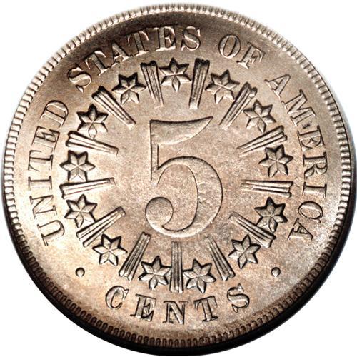 <B>1867 5C Rays MS65 NGC.</B></I> With a mintage of just over 2 million pieces, the 1867 Rays issue has the smaller mintage of the two variants for the year. This example has a well-defined obverse, though the reverse stars exhibit slight softness, and the luminous surfaces display pleasing gold-orange patina over each side. NGC has graded just nine numerically finer representatives (4/07).<BR><BR><b>Shipping:</b> Coins & Currency (<a target="_blank" href="http://www.heritageauctions.com/common/shipping.php">view shipping information</a>)