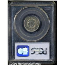 <B>1867<5C> Rays PR64 Cameo PCGS.</B></I> The 1867 With Rays Proof nickel is one of an elite group of 19th century Proof rarities and keeps company with such proof rarities as the 1864-L Indian cent, the 1864 Small Motto two-cent piece, and the 1884 and 1885 trade dollars. This is a splendid example and one of the rarest issues of the denomination in Proof format. Both sides are very sharply defined as they should be with pale gold toning over attractive surfaces. A few microscopic spots and hairlines keep this from consideration as a Gem. The fields are moderately mirrored as usual for this particular issue, while the devices have satiny luster. The contrast is sufficient for the PCGS Cameo designation. The rarity of this issue dates to a January 21, 1867 order to discontinue the With Rays design in favor of a less complicated reverse. Very few proof nickels had been struck in the first three weeks of the year, and Chief Coiner Archibald Loudon Snowden refused to include any of those in proof sets of the year. Of course, today we can't help but wonder if Snowden may have recognized the profit potential from this rarity and keep such coins for himself. It is most likely the case that between 20 and 30 Proofs of this issue were struck, and today approximately 15 are known. In his <I>Complete Encyclopedia,</B></I> Walter Breen described two different die states from a single die pair. Today, it is known that there were at least two different die varieties utilized to strike these proof coins. <BR><BR><B>Important notice:</B> Heritage usually auctions material at the rate of 200-250 lots per hour. On some occasions eBay Live bid software or the Internet may not be able to keep up with the pace of the auction. We recommend placing a realistic absentee bid now as insurance to avoid disappointment. Occasionally the auctioneer may eliminate or reject an eBay Live bid, and the auctioneer may also reopen a lot after the close of the eBay live bidding (usually because we missed an audience bid), and may reject your bid even if it shows you as the winning bidder. By bidding via eBay Live, you agree that Heritage may award the lot to another bidder at its sole discretion under the circumstances described above or any other reasonable circumstances. Since eBay bids are not shown to us until we open the lot on the floor, we treat those bids just like floor bids. In most cases the floor responds before the eBay bid is presented to us, due to Internet lag time, so for consistency we have made it a policy that floor bids are always considered first over tie eBay live bids. Also please note that all Heritage lots purchased through eBay Live carry a 20% Buyer's Premium. Please make sure you read the Terms and Conditions before you bid. </span></font></tr></table></td></tr></table>