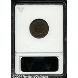 <B>1867/67<1C> AU58 ANACS.</B></I> FS-008, FND-001, Snow-1. A bold example with deep brown patina on the obverse and the central reverse. The reverse border has original orange-gold color. Struck from clashed dies.<BR><I>From the Virgil Farstad Collection, Part Two.</B></I> <BR><BR><B>Important notice:</B> Heritage usually auctions material at the rate of 200-250 lots per hour. On some occasions eBay Live bid software or the Internet may not be able to keep up with the pace of the auction. We recommend placing a realistic absentee bid now as insurance to avoid disappointment. Occasionally the auctioneer may eliminate or reject an eBay Live bid, and the auctioneer may also reopen a lot after the close of the eBay live bidding (usually because we missed an audience bid), and may reject your bid even if it shows you as the winning bidder. By bidding via eBay Live, you agree that Heritage may award the lot to another bidder at its sole discretion under the circumstances described above or any other reasonable circumstances. Since eBay bids are not shown to us until we open the lot on the floor, we treat those bids just like floor bids. In most cases the floor responds before the eBay bid is presented to us, due to Internet lag time, so for consistency we have made it a policy that floor bids are always considered first over tie eBay live bids. Also please note that all Heritage lots purchased through eBay Live carry a 20% Buyer's Premium. Please make sure you read the Terms and Conditions before you bid.