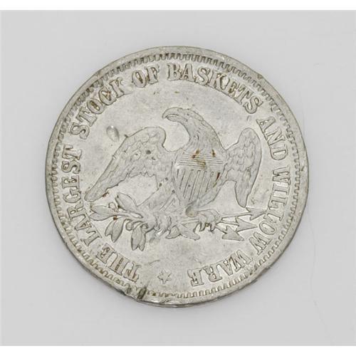 <B>(1867-70) W. Frank & Co., Ca-SF 39, San Francisco, California.</B></I> Struck in very soft white metal (with numerous dings) advertising the business as an importer of toys and fancy goods. Rulau values this at $200-$400.