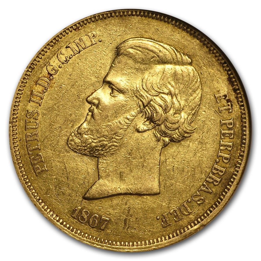 1867 Brazil Gold 20,000 Reis Pedro II AU-50 NGC