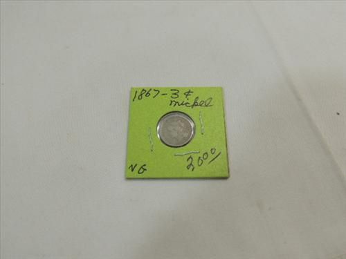 1867 CIRCULATED (VG) 3 CENT NICKEL. AS SHOWN. VIEW PICTURE FOR DETAIL.