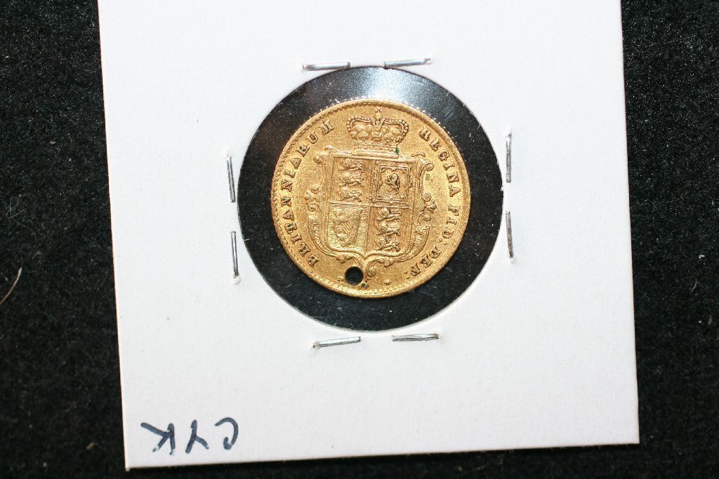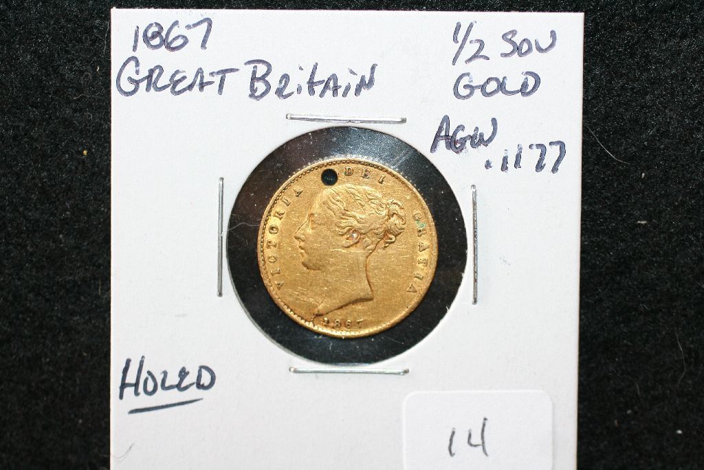 1867 Great Britain 1/2 Sovreign Gold Foreign Coin; Holed; .1177 AGW