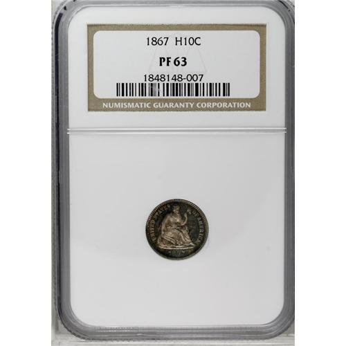 1867 H10C PR63 NGC. Splotches of cobalt-blue, lavender 1867
