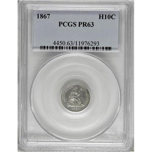 <B>1867 H10C PR63 PCGS.</B></I> PCGS Population (54/91). NGC Census: (21/147). Mintage: 625. Numismedia Wsl. Price for NGC/PCGS coin in PR63: $425. (#4450)<BR><BR><B>Coin Engraver:</B> Christian Gobrecht<BR><BR><b>Shipping:</b> Coins & Currency (<a target="_blank" href="http://www.heritageauctions.com/common/shipping.php">view shipping information</a>)