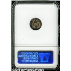 <B>1867 H10C PR64 NGC.</B></I> The untoned centers are framed by vivid ocean-blue and mauve-red patina. The frosty devices merit a Cameo designation, which is not granted by the older generation holder. A couple of unimportant marks are on the obverse field, however, the eye appeal is irrefutable.