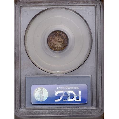 <B>1867<H10C> PR64 PCGS.</B></I> Light patches of hairlining on each side of this piece determine the grade. The luster is intense, the iridescent patination is a lovely copper-gold ceding to amber and ocean-blue at the rims, and there are no observable contact marks. The strike, while generally sharp, shows slight softness on the upper wreath details. Population: 51 in 64, 39 finer (4/06).