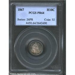 <TR><TD width="100%"><TABLE cellSpacing=1 cellPadding=3 width="100%" border=0><TBODY><TR><TD width="100%" bgColor=#79735c><FONT face=arial color=#ffffff size=3><B>Description</B> </FONT></TD></TR><TR><TD width="100%" bgColor=#ffffff><FONT face=arial size=2><B>1867 H10C PR64 PCGS.</B></I> A fully original example with colorful cobalt-blue toning at the obverse border and over most of the reverse. A total of only 8,625 Half Dimes were produced in 1867, 825 of these being proofs.<BR><I>From the Brian Loncar Collection.</B></I> </FONT></TD></TR></TBODY></TABLE></TD></TR></TBODY></TABLE><BR><A name=PricesRealized></A><TABLE cellSpacing=0 cellPadding=0 width="100%" bgColor=#000000 border=0><TBODY><TR><TD width="100%"><TABLE cellSpacing=1 cellPadding=3 width="100%" border=0><TBODY><TR><TD width="100%" bgColor=#79735c><A name=PR><FONT face=arial color=#ffffff size=3><B>Previous Prices from Heritage Auctions</B> </FONT></A></TD></TR><TR><TD bgColor=#f6f6ed><TABLE cellSpacing=0 cellPadding=0 width="100%" border=1><TBODY><TR><TD align=middle width="33%"><B>Date</B></TD><TD align=middle width="33%"><B>Service</B></TD><TD align=middle width="33%"><B>Price</B></TD></TR><TR bgColor=whitesmoke><TD width="33%"><B>05/03/2003</B></TD><TD width="33%">PCGS</TD><TD width="33%">$1,092.50</TD></TR><TR bgColor=whitesmoke><TD width="33%"><B>08/14/2001</B></TD><TD width="33%">NGC</TD><TD width="33%">$525.00</TD></TR><TR bgColor=whitesmoke><TD width="33%"><B>02/24/2001</B></TD><TD width="33%">NGC</TD><TD width="33%">$540.50</TD></TR><TR bgColor=whitesmoke><TD width="33%"><B>03/21/1998</B></TD><TD width="33%">NGC</TD><TD width="33%">$517.50</TD></TR><TR bgColor=whitesmoke><TD width="33%"><B>06/02/1995</B></TD><TD width="33%">PCGS</TD><TD width="33%">$577.50</TD></TR><TR bgColor=whitesmoke><TD width="33%"><B>08/16/1995</B></TD><TD width="33%">NGC</TD><TD width="33%">$478.50</TD></TR><TR bgColor=whitesmoke><TD width="33%"><B>07/31/1993</B></TD><TD width="33%">NGC</TD><TD width="33%">$803.00</TD></TR></TBODY></TABLE></TD></TR><TR><TD bgColor=#ffffff><FONT face=arial size=1 ?>PLEASE NOTE: All prices realized reflect the final hammer price PLUS the buyer's premium in auctions that charge a buyer's premium. Each item has a notation at the top of the listing indicating whether that lot included a buyer's premium. Example: A item that sells with a final hammer price of $100 and a 20% buyer's premium will display with a price realized of $120. All information listed is intended to be as accurate as possible, but errors are possible. Please use this guide carefully and inform us of any inaccuracies. </FONT></TD></TR></TBODY></TABLE></TD></TR></TBODY></TABLE><BR><TABLE cellSpacing=0 cellPadding=0 width="100%" bgColor=#000000 border=0><TBODY><TR><TD width="100%"><TABLE cellSpacing=1 cellPadding=3 width="100%" border=0><TBODY><TR><TD width="100%" bgColor=#79735c colSpan=6><FONT face=arial color=#ffffff size=3><B>Price Guide*</B> </FONT></TD></TR><TR bgColor=#f6f6ed><TD align=middle><B>Grade</B> </TD><TD align=middle><B>Coin World<BR>(Trends)</B> </TD><TD align=middle><B>Numismedia<BR>Retail</B> </TD><TD align=middle><B>Numismedia<BR>Wholesale</B> </TD><TD align=middle><B>Coin<BR>Universe</B> </TD><TD align=middle><B>Heritage<BR>Value Index</B> </TD></TR><TR bgColor=#ffffff><TD align=middle>63</TD><TD align=right>---</TD><TD align=right>$510.00</TD><TD align=right>$425.00</TD><TD align=right>$450.00</TD><TD align=right>$385.67</TD></TR><TR style="FONT-WEIGHT: bold" bgColor=#cccfdd><TD align=middle>64</TD><TD align=right>---</TD><TD align=right>$690.00</TD><TD align=right>$575.00</TD><TD align=right>$575.00</TD><TD align=right>$474.17</TD></TR><TR bgColor=#ffffff><TD align=middle>65</TD><TD align=right>---</TD><TD align=right>---</TD><TD align=right>$1,225.00</TD><TD align=right>$1,800.00</TD><TD align=right>$1,104.00</TD></TR><TR bgColor=#ffffff><TD colSpan=6><FONT size=1>*All information listed is intended to be as accurate as possible, but errors are possible. No item may be returned or refused based on this information which is provided as a service to our customers. You should contact each pricing source directly to determine the accuracy of this information. </FONT></TD></TR></TBODY></TABLE></TD></TR></TBODY></TABLE><BR><TABLE cellSpacing=0 cellPadding=0 width="100%" bgColor=#000000 border=0><TBODY><TR><TD width="100%"><TABLE cellSpacing=1 cellPadding=3 width="100%" border=0><TBODY><TR><TD width="100%" bgColor=#79735c><FONT face=arial color=#ffffff size=3><B>Population Guide</B> </FONT></TD></TR><TR bgColor=#ffffff><TD align=middle><!-- Begin Output of Population Grid--><TABLE cellSpacing=0 cellPadding=0 width="100%" border=0><TBODY><TR><TD vAlign=center><TABLE cellSpacing=0 width="100%" border=1 cellsadding="3"><TBODY><TR><TD vAlign=center><TABLE cellSpacing=0 cellPadding=3 width="100%" border=1><TBODY><TR><TD vAlign=center align=middle bgColor=#f0f1e8 colSpan=2 <CENTER><FONT face=Arial size=2><B>PCGS Pop </B></FONT><CENTER></CENTER></TD><TD vAlign=center align=middle bgColor=#f0f1e8 colSpan=2><CENTER><FONT face=Arial size=2><B>NGC Pop</B></CENTER></FONT></TD></TR><TR><TD vAlign=center><FONT face=Arial size=2>(64)</FONT> </TD><TD vAlign=center align=right><FONT face=Arial size=2>50</FONT> </TD><TD vAlign=center><FONT face=Arial size=2>(64)</FONT> </TD><TD vAlign=center align=right><FONT face=Arial size=2>67</FONT> </TD></TR><TR><TD vAlign=center><FONT face=Arial size=2>(>64)</FONT> </TD><TD vAlign=center align=right><FONT face=Arial size=2>42</FONT> </TD><TD vAlign=center><FONT face=Arial size=2>(>64)</FONT> </TD><TD vAlign=center align=right><FONT face=Arial size=2>53</FONT> </TD></TR></TBODY></TABLE></TD></TR></TBODY></TABLE></TD></TR></TBODY></TABLE><!-- End Output of Population Grid--></TD></TR></TBODY></TABLE></TD></TR></TBODY></TABLE><BR><TABLE cellSpacing=0 cellPadding=0 width="100%" bgColor=#000000 border=0><TBODY><TR> Important notice: We expect to be auctioning lots at the rate of 200-250 per hour. On occasion eBa