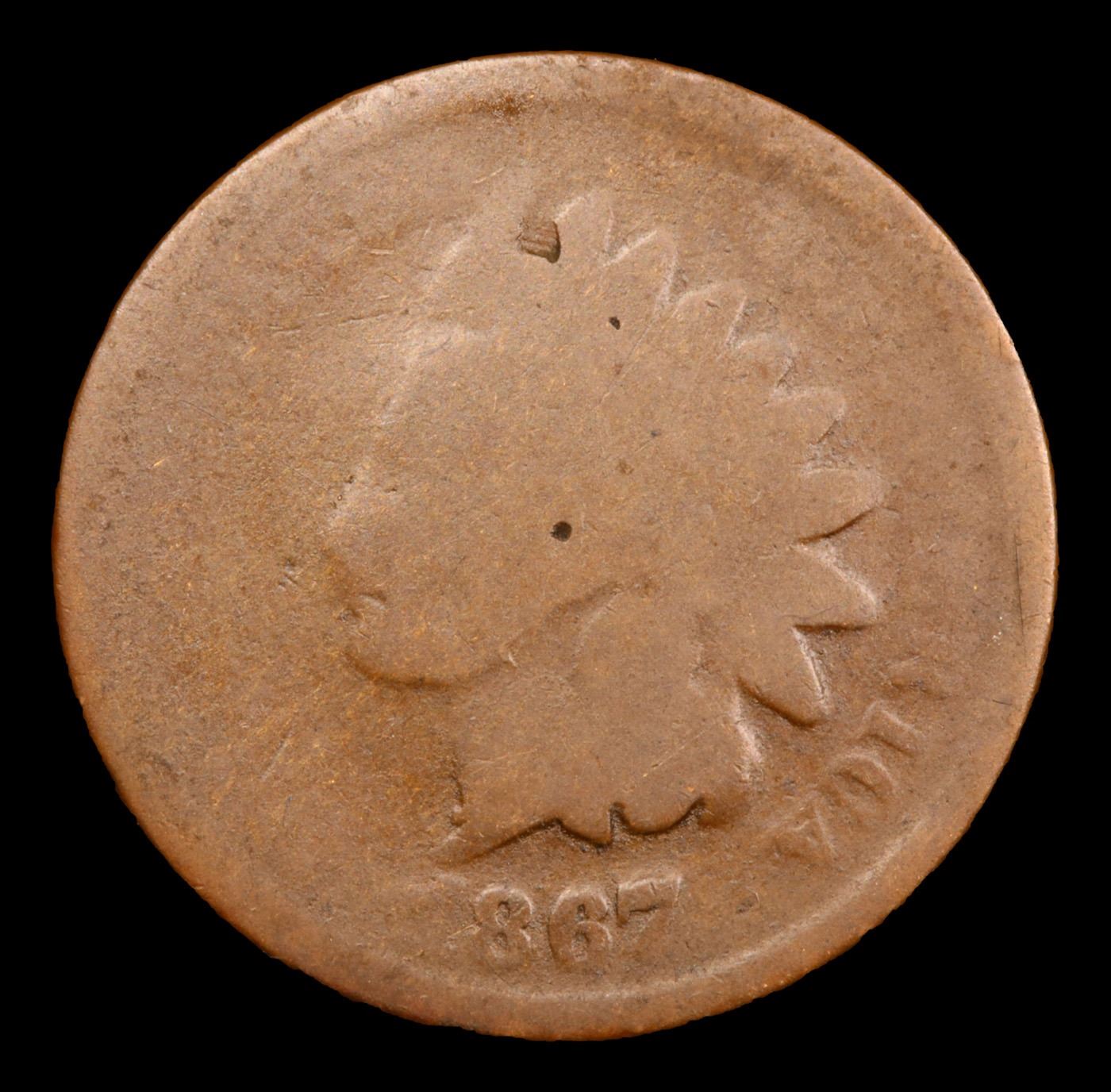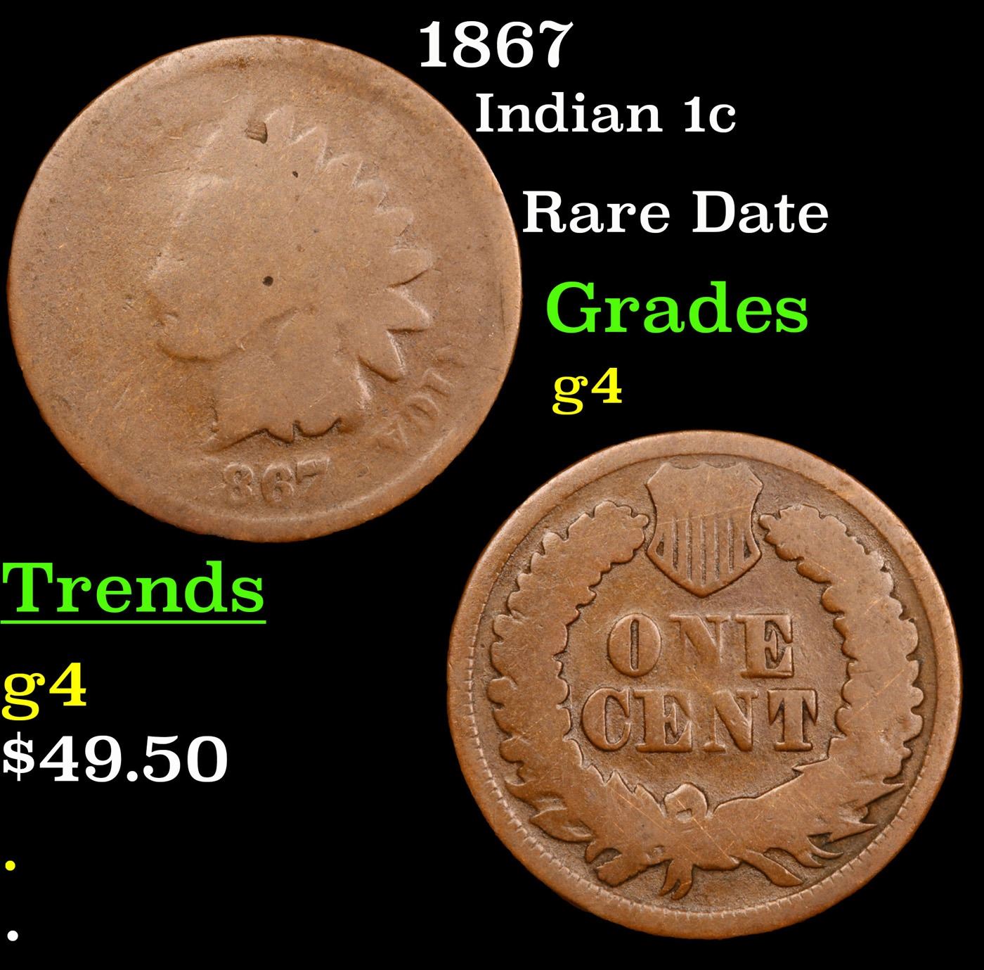1867 Indian Cent 1c Grades g, good. PCGS estimates only 5000 survive in all grades. A very tough date.