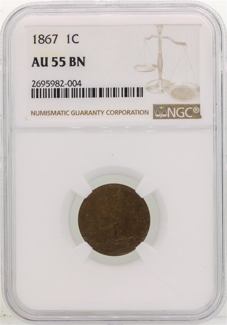 One 1867 Indian Head Cent Coin NGC AU55 BN. NGC Certified.