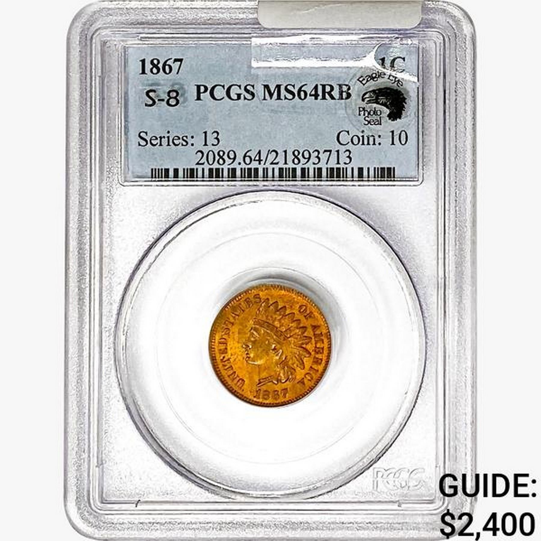 1867 Indian Head Cent PCGS MS64 RB