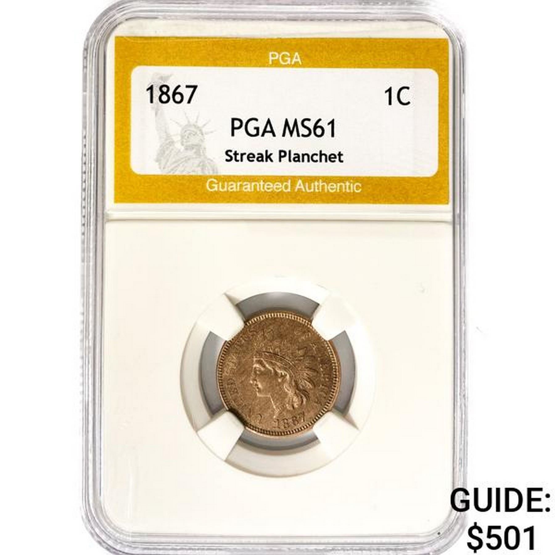 1867 Indian Head Cent PGA MS61 Streak Planchet
