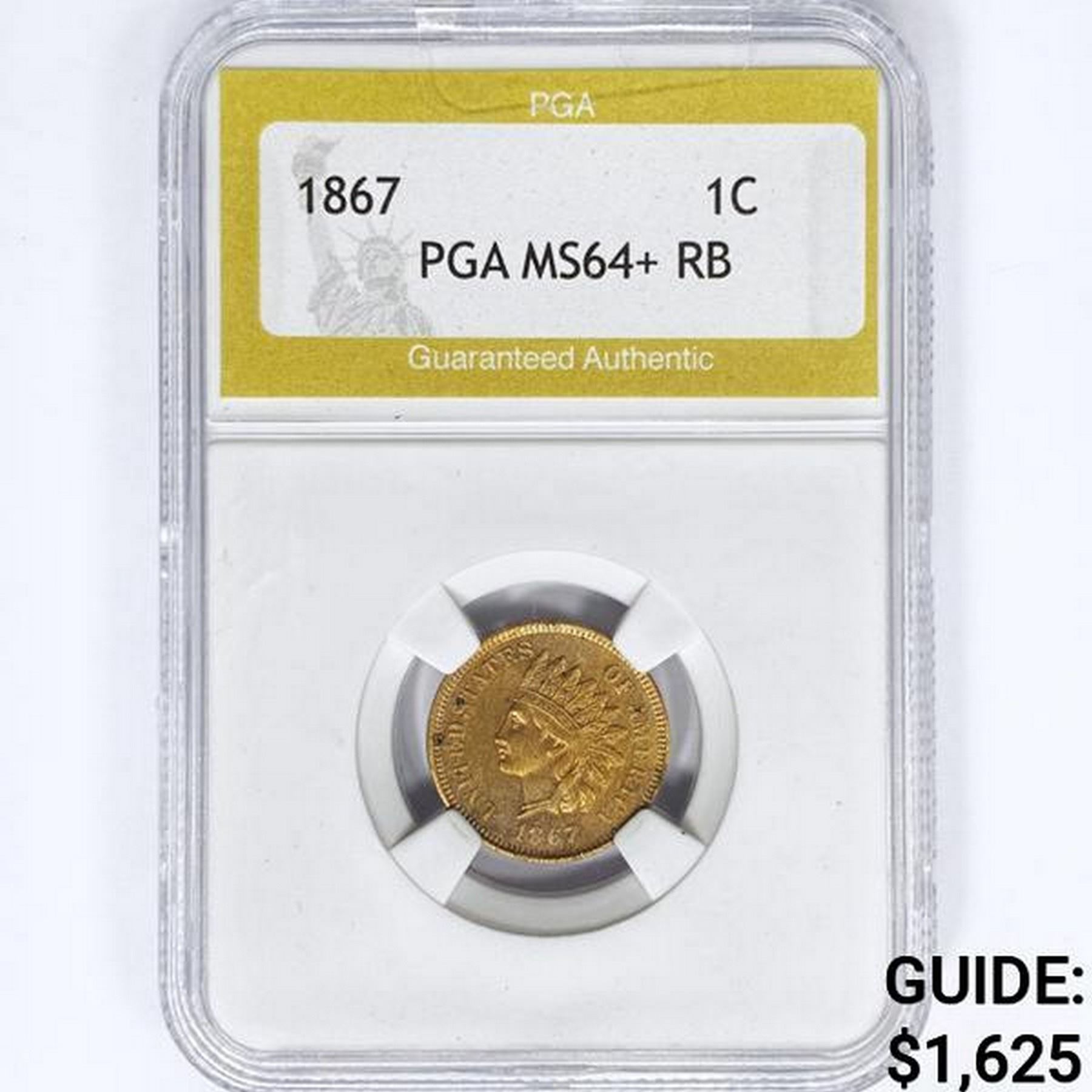 1867 Indian Head Cent PGA MS64+ RB