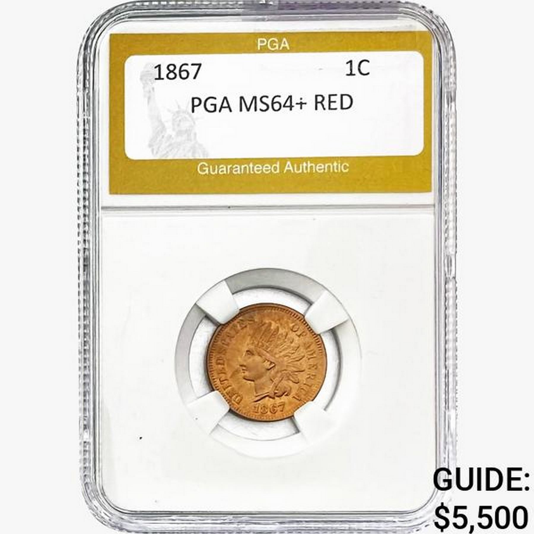 1867 Indian Head Cent PGA MS64+ RED