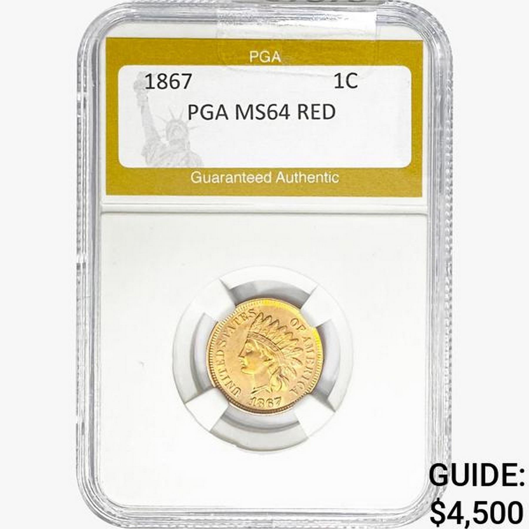 1867 Indian Head Cent PGA MS64 RED