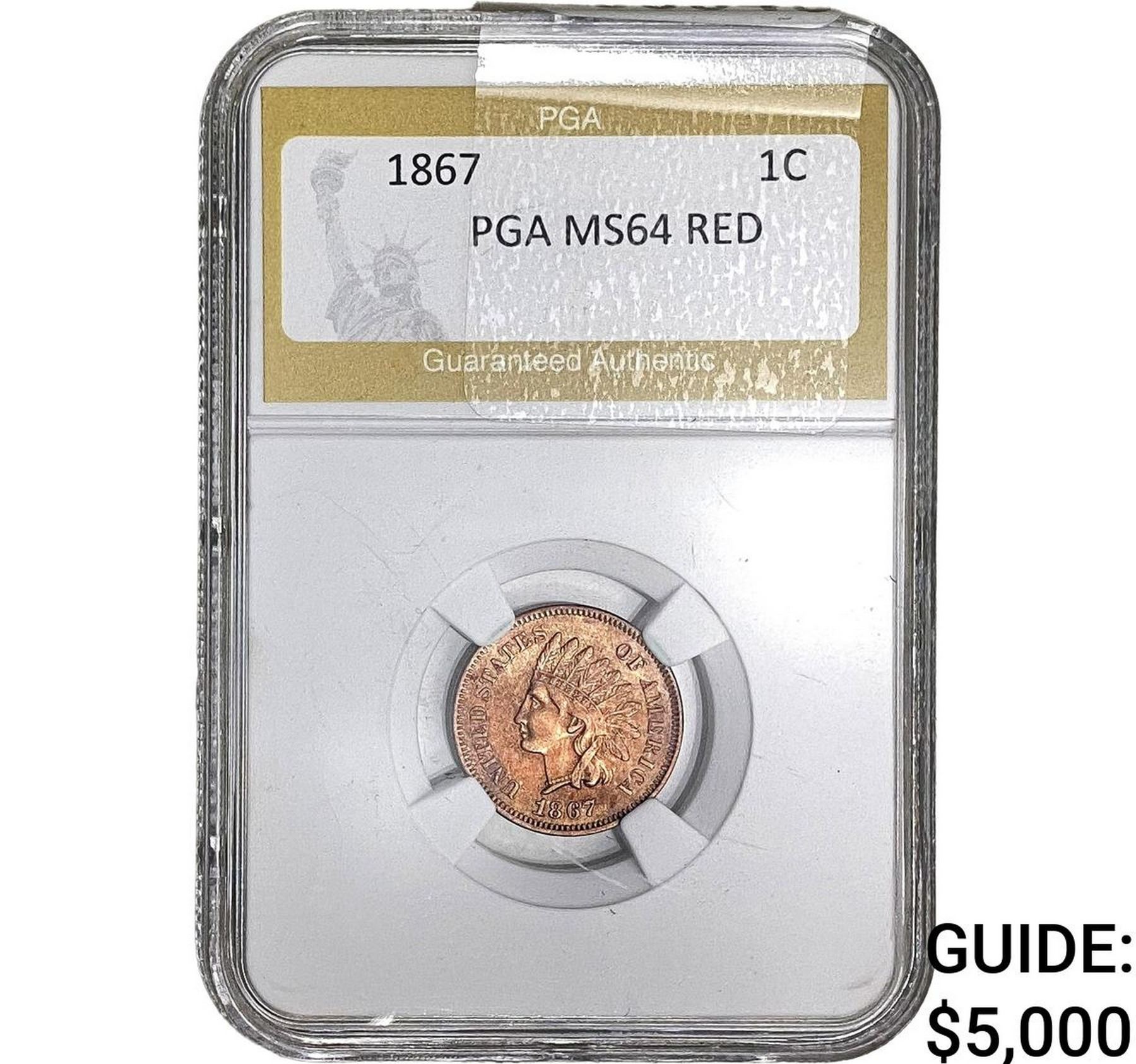 1867 Indian Head Cent PGA MS64 RED