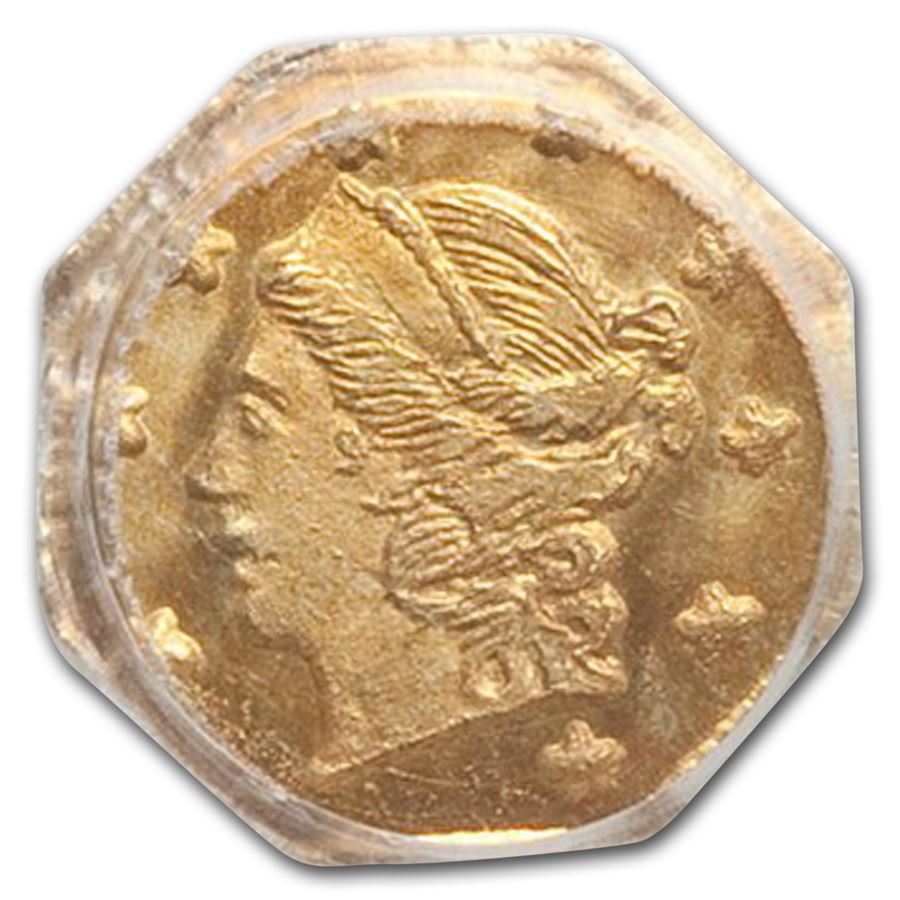 1867 Liberty Octagonal 25 Cent Gold MS-66 PCGS (BG-709)