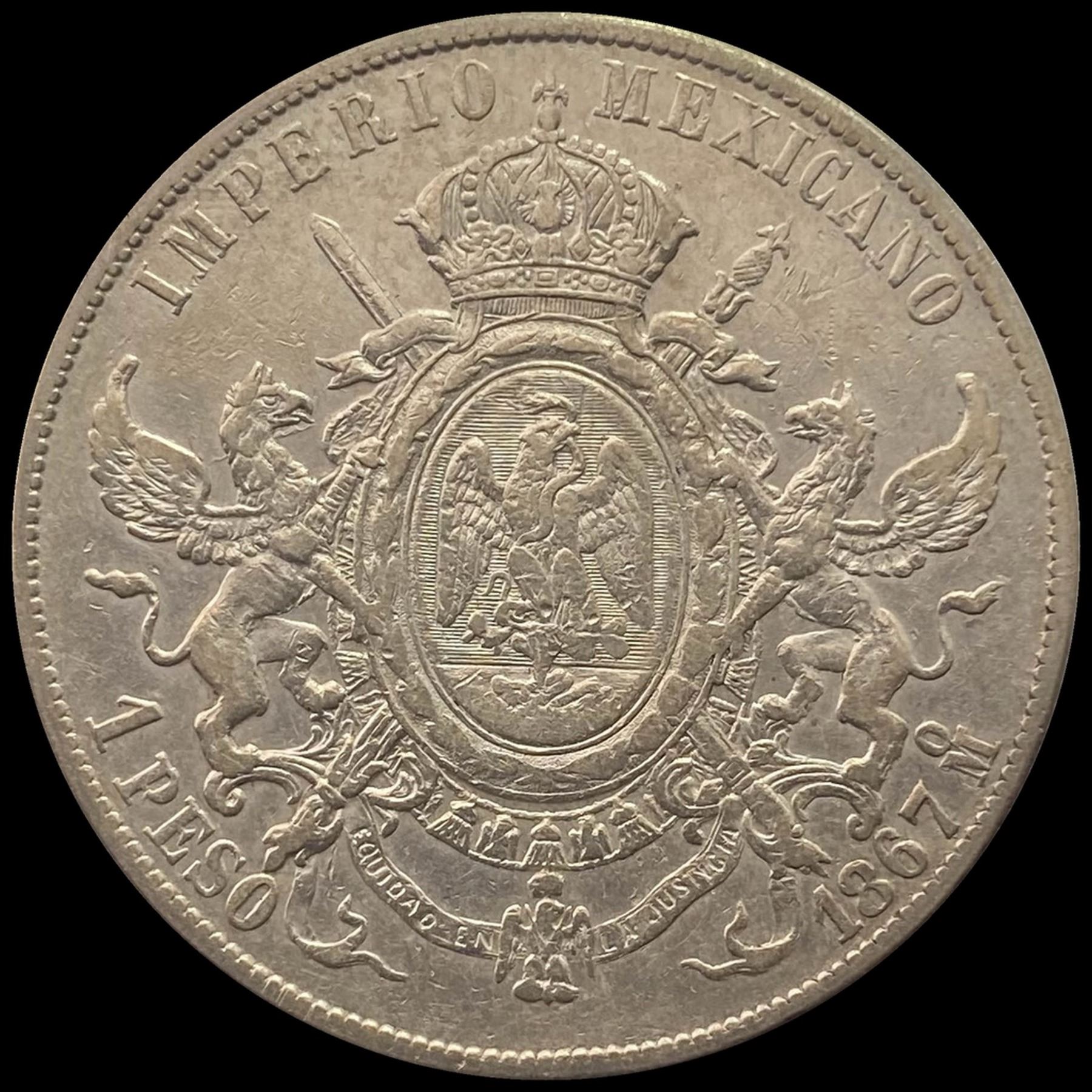 1867-Mo Mexico Silver Peso Maximilian I CLOSELY UNCIRCULATED