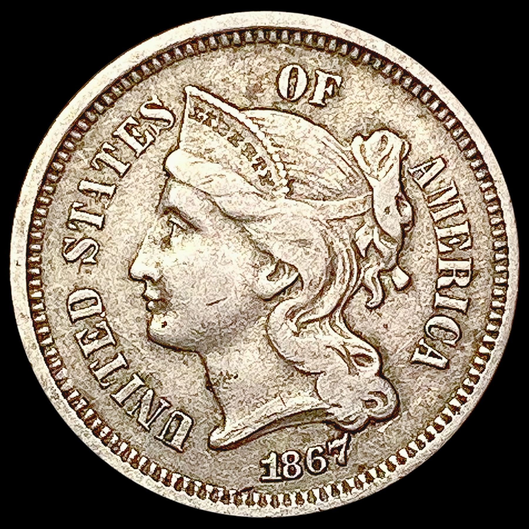 1867 Nickel Three Cent NEARLY UNCIRCULATED
