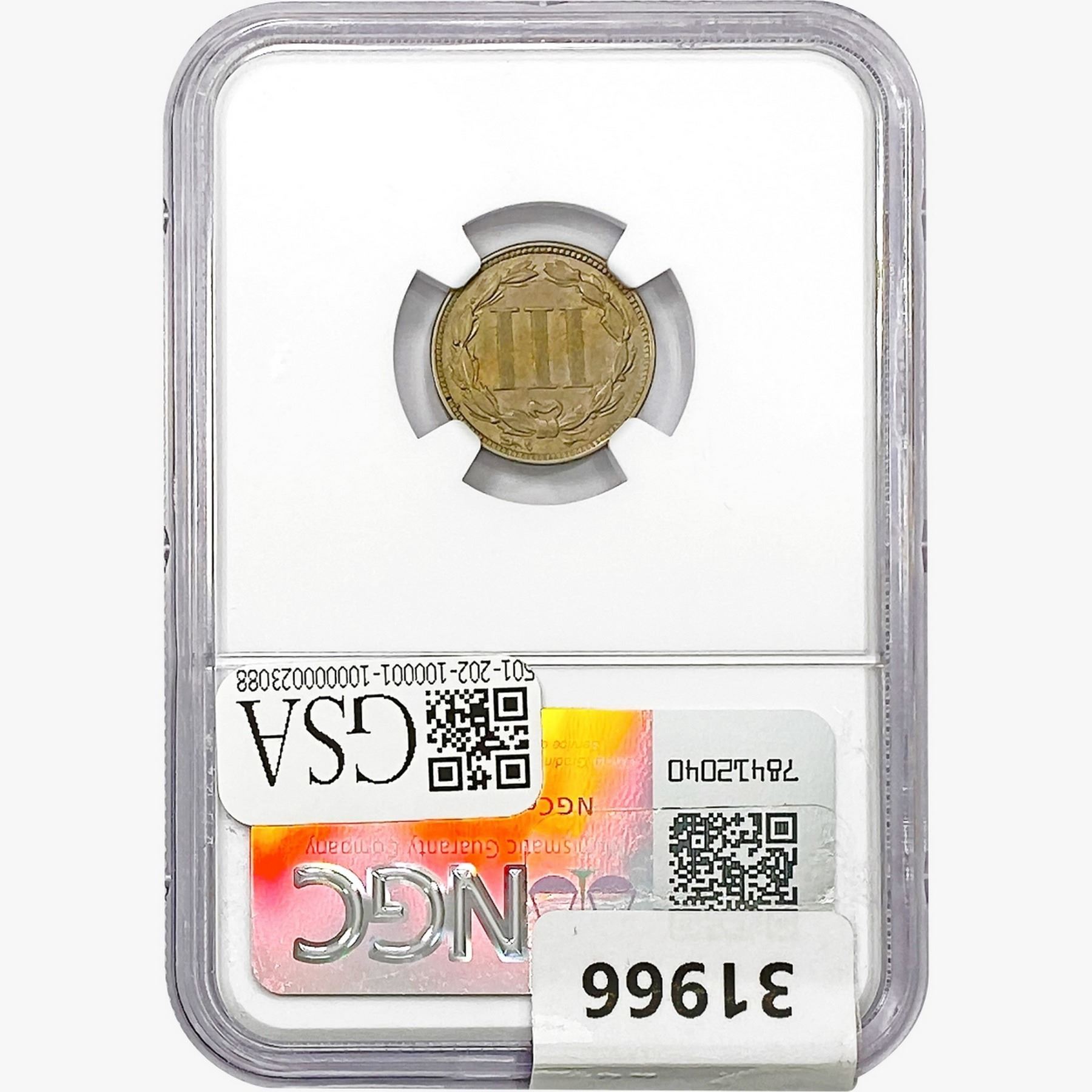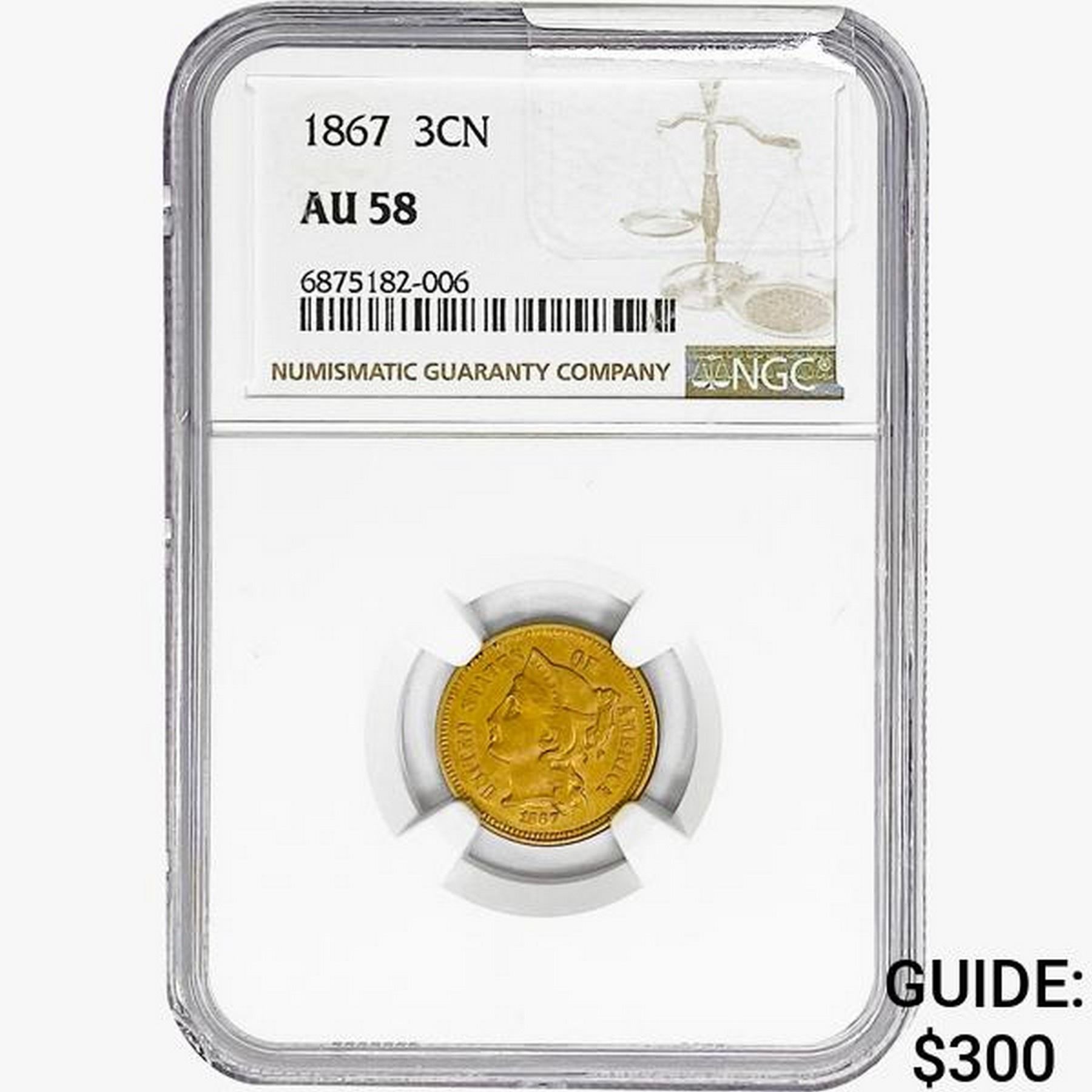 1867 Nickel Three Cent NGC AU58