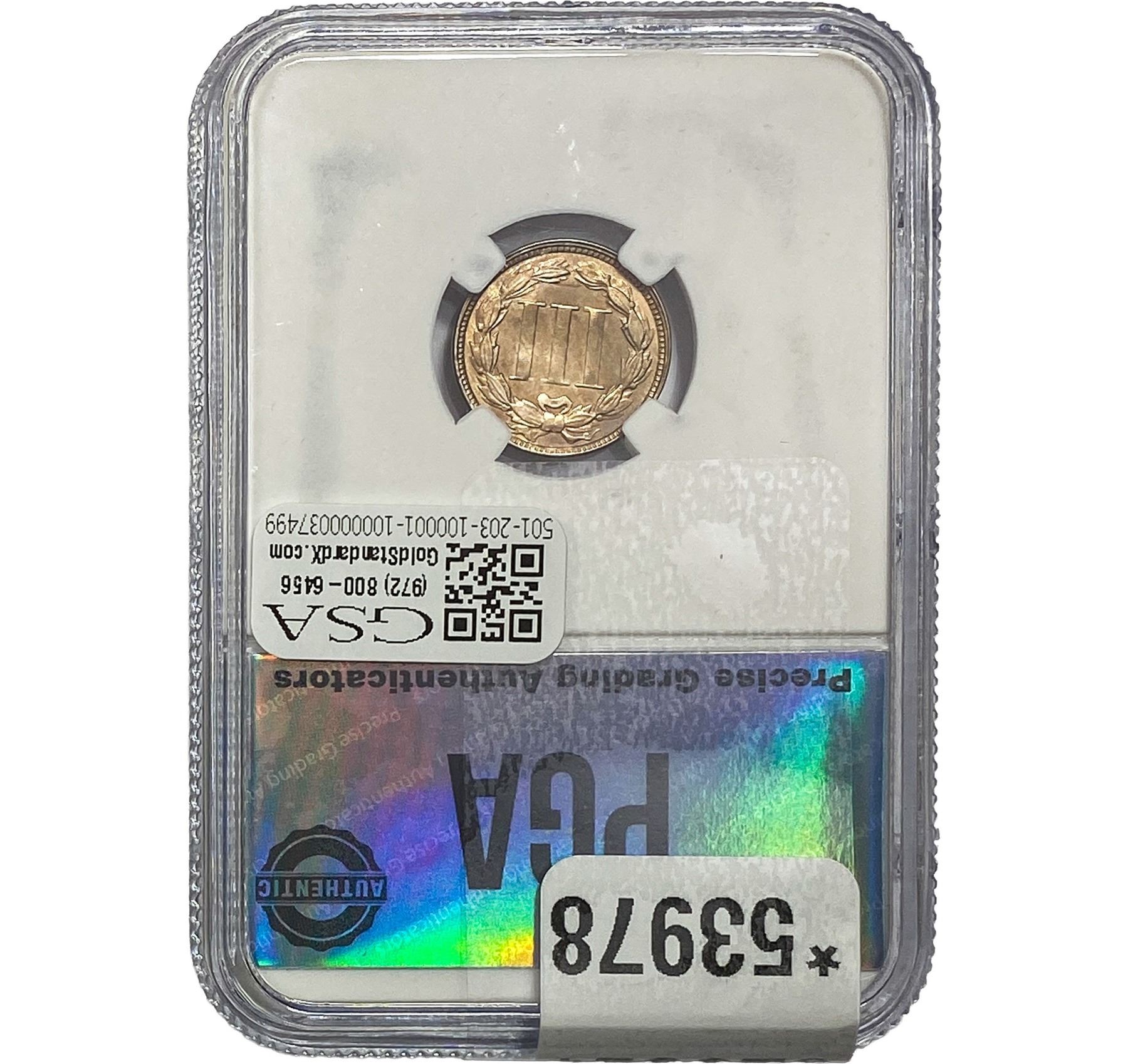 e. Coins sold referencing a third-party grading service are sold “AS IS” without any express or implied warranty, except for a guarantee by GSA that they are genuine. Removal or alteration of the holder, voids all of Bidder’s claims concerning that Product. Certain warranties may be available from the grading services and Bidders are referred to them for further details: Numismatic Guaranty Corporation (NGC), PO Box 4776, Sarasota, FL 34230, www.ngccoin.com/services/writtenguarantee.asp; Professional Coin Grading Services (PCGS), PO Box 9458, Newport Beach, CA 92658, www.pcgs.com/guarantee.html; ANACS, 6555 S. Kenton St., Ste. 303, Englewood, CO 80111; and Independent Coin Grading Co. (ICG), 7901 East Bellview, Ave., Suite 50, Englewood, CO 80111.