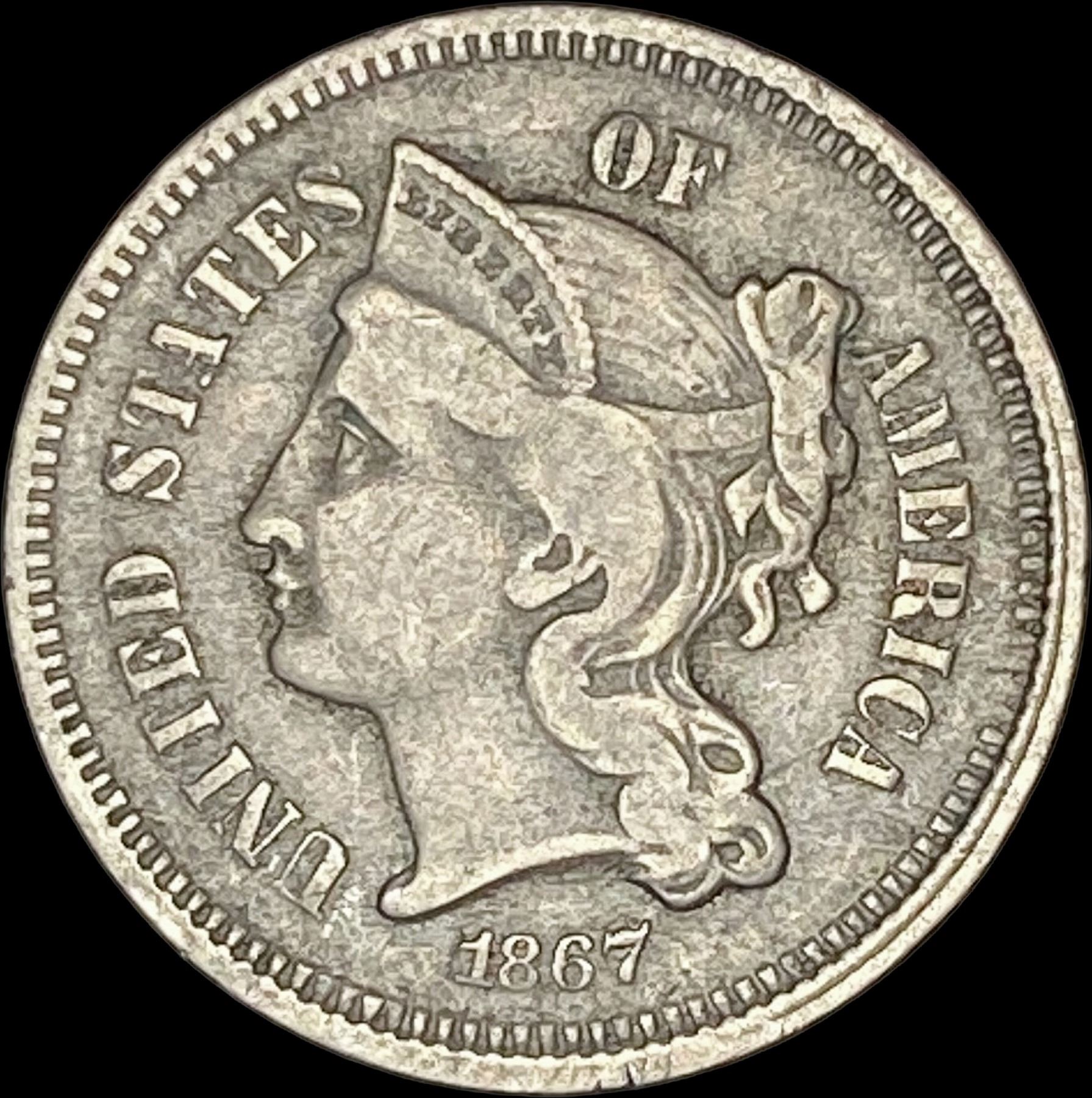 1867 Nickel Three-Cent Piece LIGHTLY CIRCULATED