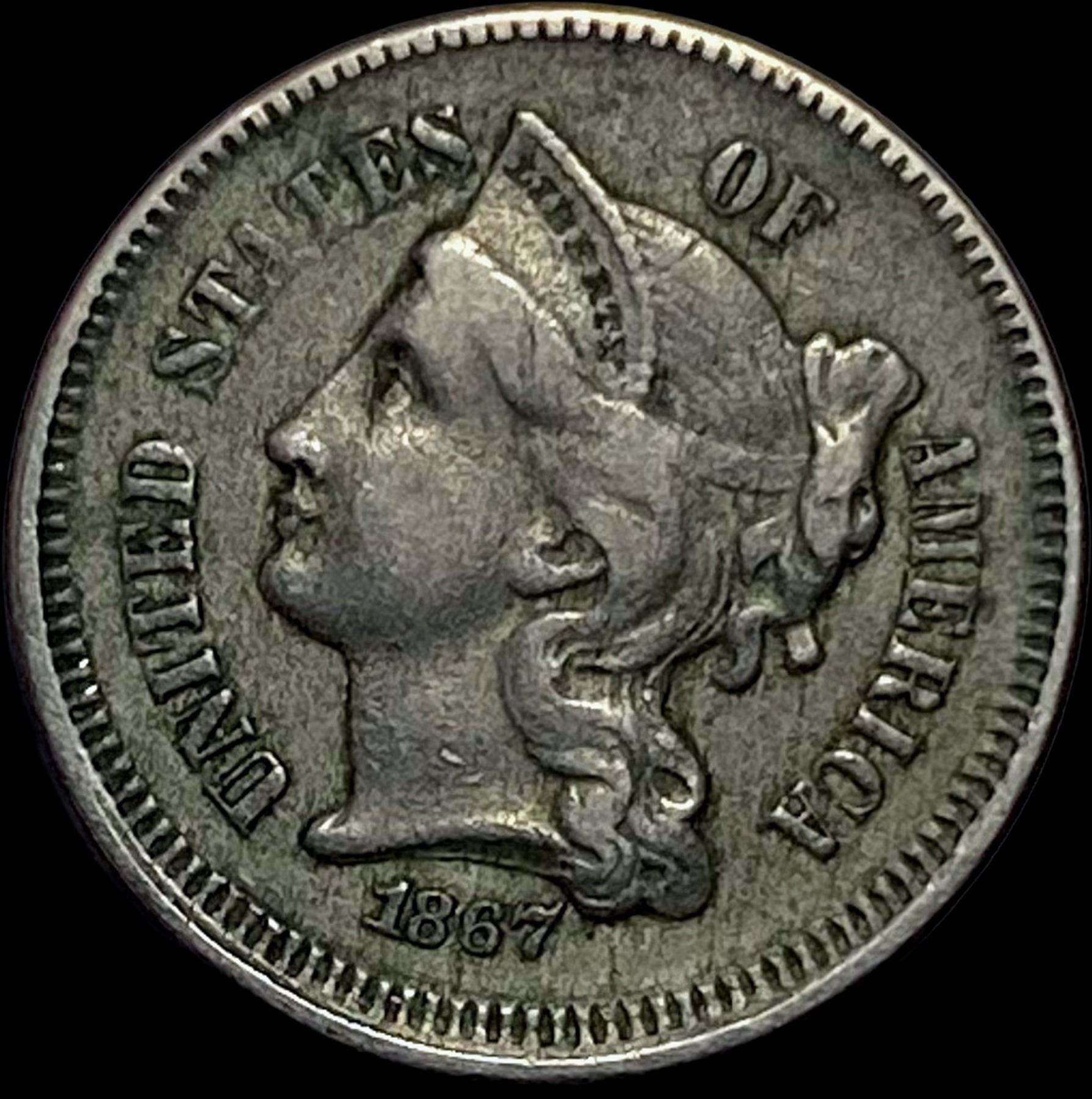 1867 Nickel Three-Cent Piece NEARLY UNCIRCULATED