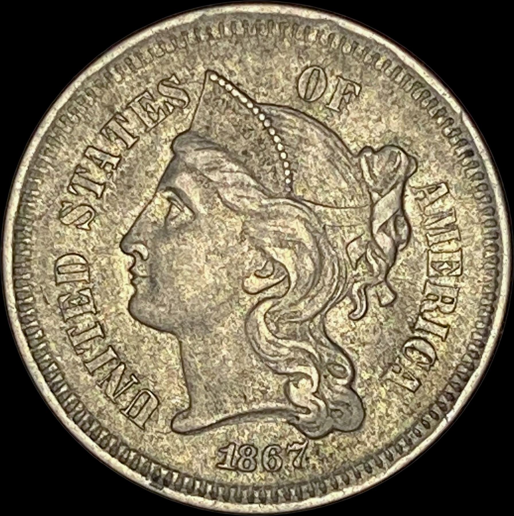 1867 Nickel Three-Cent Piece NEARLY UNCIRCULATED