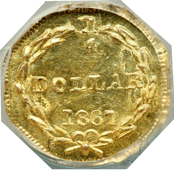 1867 Quarter Dollar Octagonal. Breen and Gillio-709. Rarity 4. NGC MS64