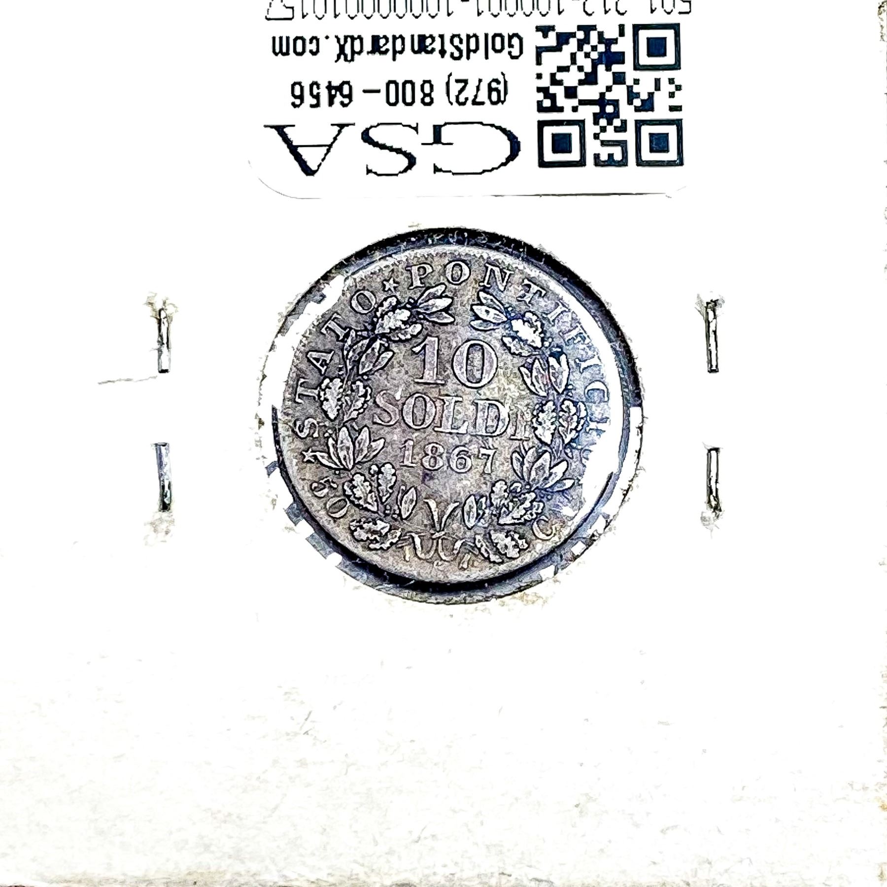 1867-R Silver Papal States 10 Soldi XF