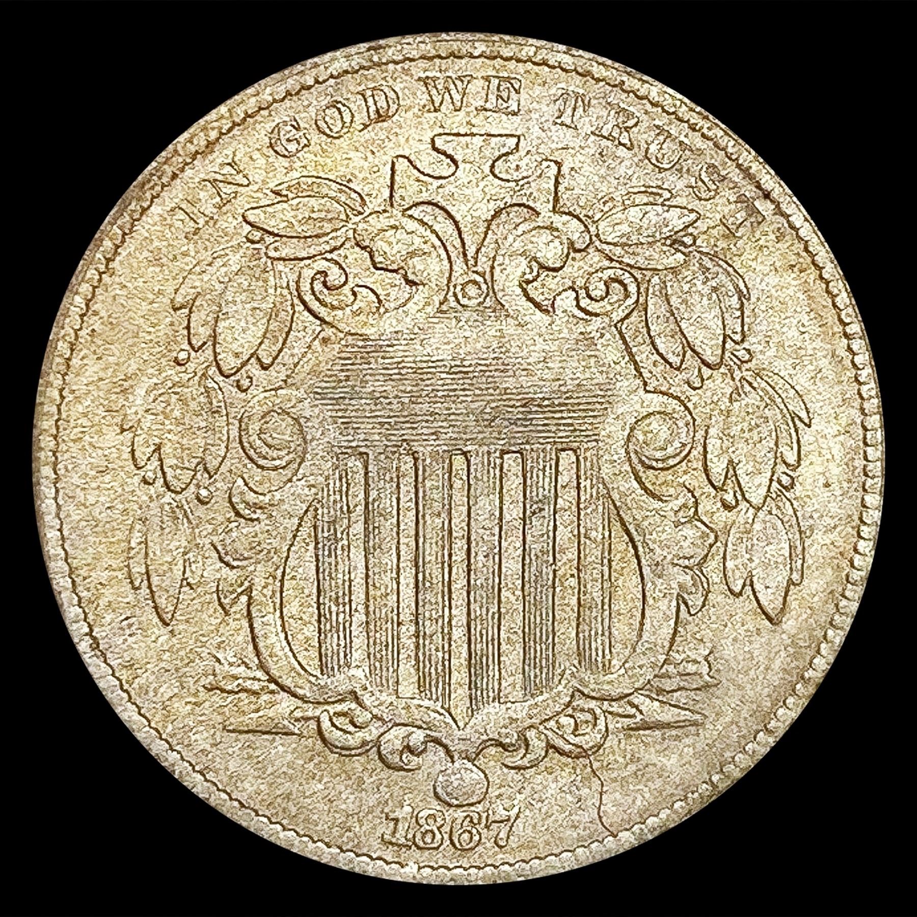 1867 Rays Seated Liberty Nickel NEARLY UNC