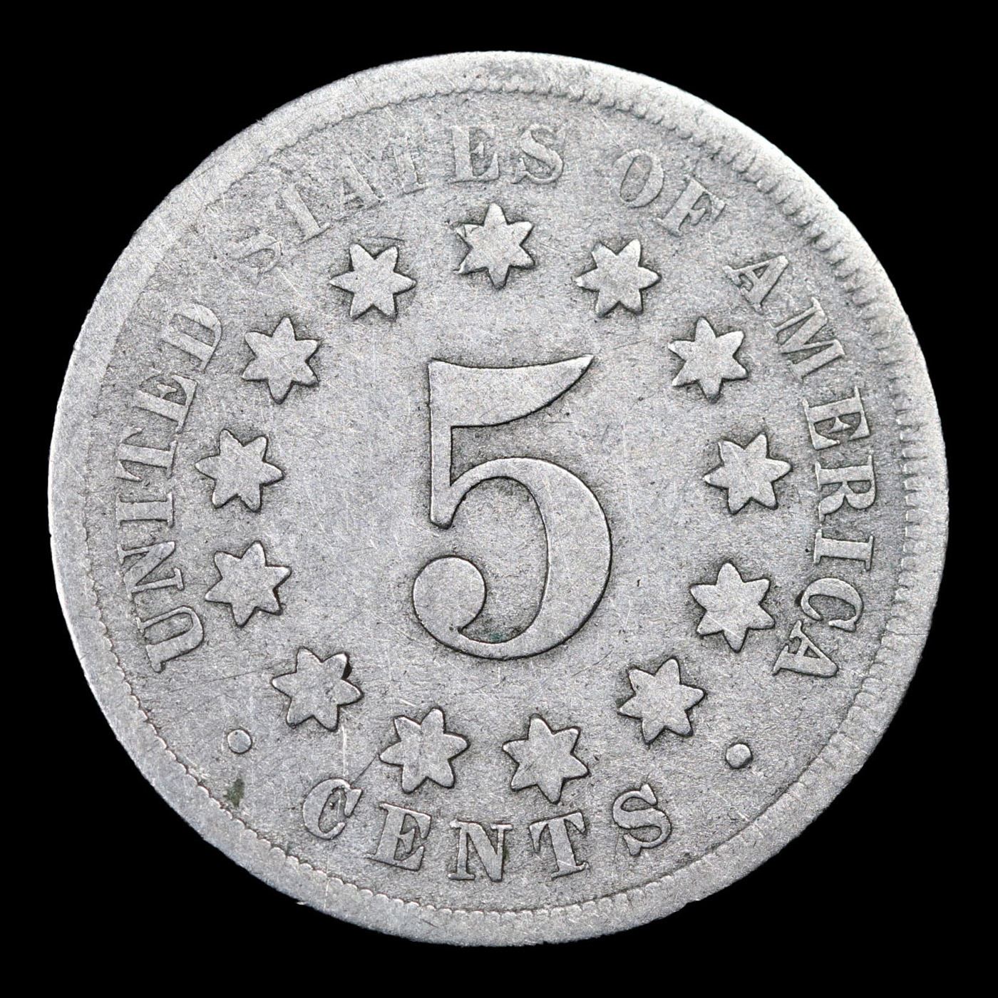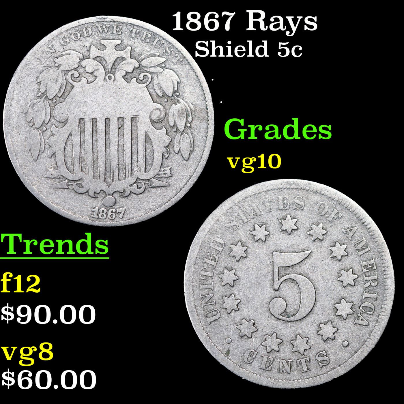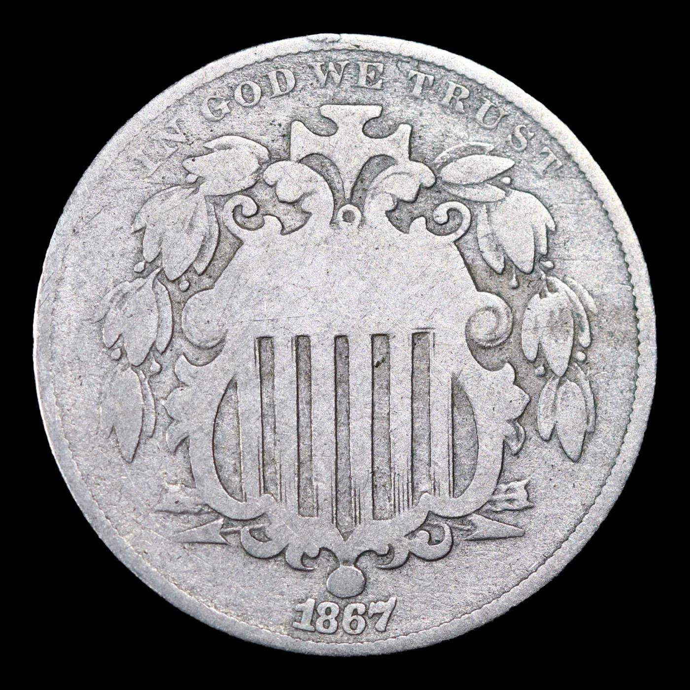 1867 Rays Shield Nickel 5c Grades vg+.