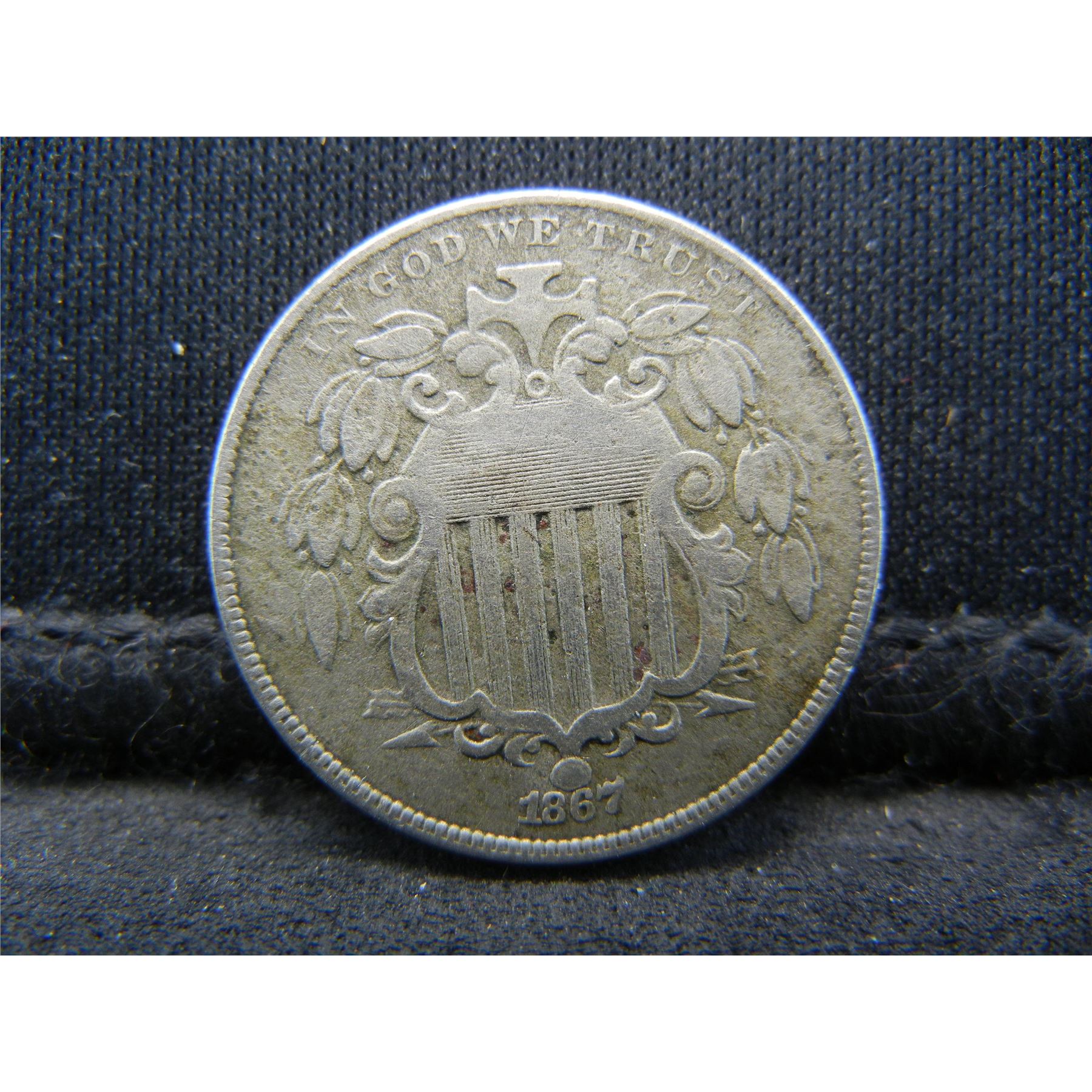 1867 Rays Shield Nickel VF