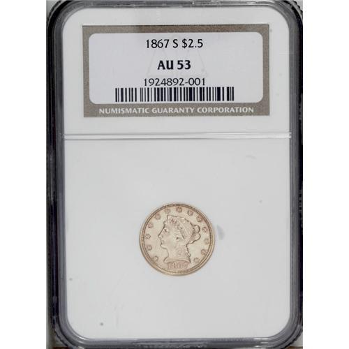 1867-S $2 1/2 AU53 NGC. Both sides, but the reverse in