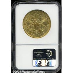 <B>1867-S<$20> AU53 NGC.</B></I> A generally good peripheral strike, but weak in the centers, particularly on the obverse. Luster adheres to some of the recessed areas of this apricot-gold example. Several light to moderate abrasions are uniformly scattered about. <BR><BR><B>Important notice:</B> Heritage usually auctions material at the rate of 200-250 lots per hour. On some occasions eBay Live bid software or the Internet may not be able to keep up with the pace of the auction. We recommend placing a realistic absentee bid now as insurance to avoid disappointment. Occasionally the auctioneer may eliminate or reject an eBay Live bid, and the auctioneer may also reopen a lot after the close of the eBay live bidding (usually because we missed an audience bid), and may reject your bid even if it shows you as the winning bidder. By bidding via eBay Live, you agree that Heritage may award the lot to another bidder at its sole discretion under the circumstances described above or any other reasonable circumstances. Since eBay bids are not shown to us until we open the lot on the floor, we treat those bids just like floor bids. In most cases the floor responds before the eBay bid is presented to us, due to Internet lag time, so for consistency we have made it a policy that floor bids are always considered first over tie eBay live bids. Also please note that all Heritage lots purchased through eBay Live carry a 20% Buyer's Premium. Please make sure you read the Terms and Conditions before you bid. </span></font></tr></table></td></tr></table>