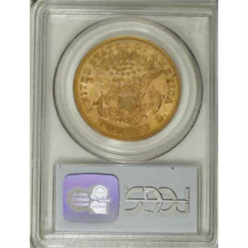 <B>1867-S $20 AU53 PCGS.</B></I> The reverse and the upper stars are strong, though the lower stars and portrait show a measure of softness. The still-lustrous yellow-gold surfaces show a few small alloy dots and minor wear.<BR><BR><B>Coin Engraver:</B> James B. Longacre<BR><BR><b>Shipping:</b> Coins & Currency (<a target="_blank" href="http://www.heritageauctions.com/common/shipping.php">view shipping information</a>)