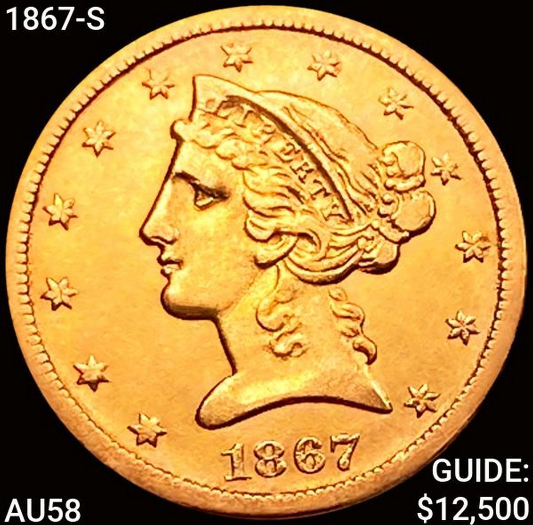 1867-S $5 Gold Half Eagle CHOICE AU