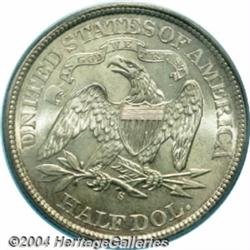 <table><tr><td><table><tr><td>1867-S 50C MS66 PCGS. Ex: Eliasberg. Guide Book shoppers might skip right past the 1867-S Half Dollar in Uncirculated grades for what seems like good reason. Despite a mintage of nearly 1.2 million pieces and a common date MS60 valuation, this overlooked issue is in reality quite difficult to obtain even in average Mint State condition. The Superb example offered here is clearly finer than any '67-S seen by this cataloger and its status as the single finest piece certified by either PCGS or NGC validates its importance. Both sides display a shimmering, nearly mark-free appearance with excellent sharpness over most of the central motifs. Only the obverse stars and a portion of Liberty's head are curiously softly struck. Bits of light golden toning delicately accent the borders. Population: 1 in 66, 0 finer (3/04).Ex: Henry Blair Collection (Charles Steigerwalt, 10/1896); J.M. Clapp; John H. Clapp; Louis E. Eliasberg, Sr. Collection (Bowers and Merena, 4/1997); lot 2006. <BR><BR><B>Important notice:</B> Heritage usually auctions material at the rate of 200-250 lots per hour. On some occasions eBay Live bid software or the Internet may not be able to keep up with the pace of the auction. We recommend placing a realistic absentee bid now as insurance to avoid disappointment. Occasionally the auctioneer may eliminate or reject an eBay Live bid, and the auctioneer may also reopen a lot after the close of the eBay live bidding (usually because we missed an audience bid), and may reject your bid even if it shows you as the winning bidder. By bidding via eBay Live, you agree that Heritage may award the lot to another bidder at its sole discretion under the circumstances described above or any other reasonable circumstances. Since eBay bids are not shown to us until we open the lot on the floor, we treat those bids just like floor bids. In most cases the floor responds before the eBay bid is presented to us, due to Internet lag time, so for consistency we have made it a policy that floor bids are always considered first over tie eBay live bids. Also please note that all Heritage lots purchased through eBay Live carry a 20% Buyer's Premium. Please make sure you read the Terms and Conditions before you bid. <BR><BR><B>IMPORTANT ANNOUNCEMENT ABOUT RESERVES:</B> Heritage now divulges all reserves on its web site 7 days before every auction. If you want to know whether the reserve on this lot has been met, and if not, what the reserve amount is, please visit this lot page on the HeritageCoin.com web site, or email: bid@HeritageGalleries.com </span></font></td></tr></table></td></tr></table>