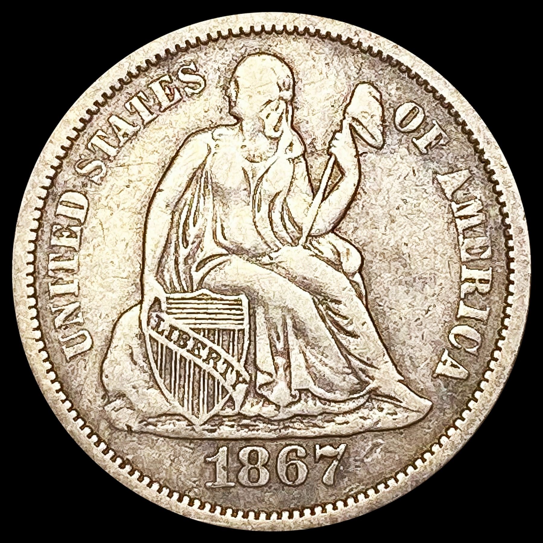 1867-S Seated Liberty Dime ABOUT UNCIRCULATED