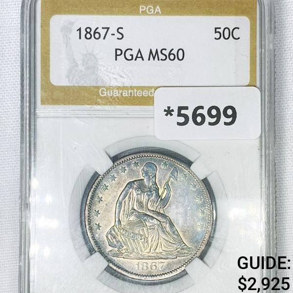 1867-S Seated Liberty Half Dollar PGA-MS60