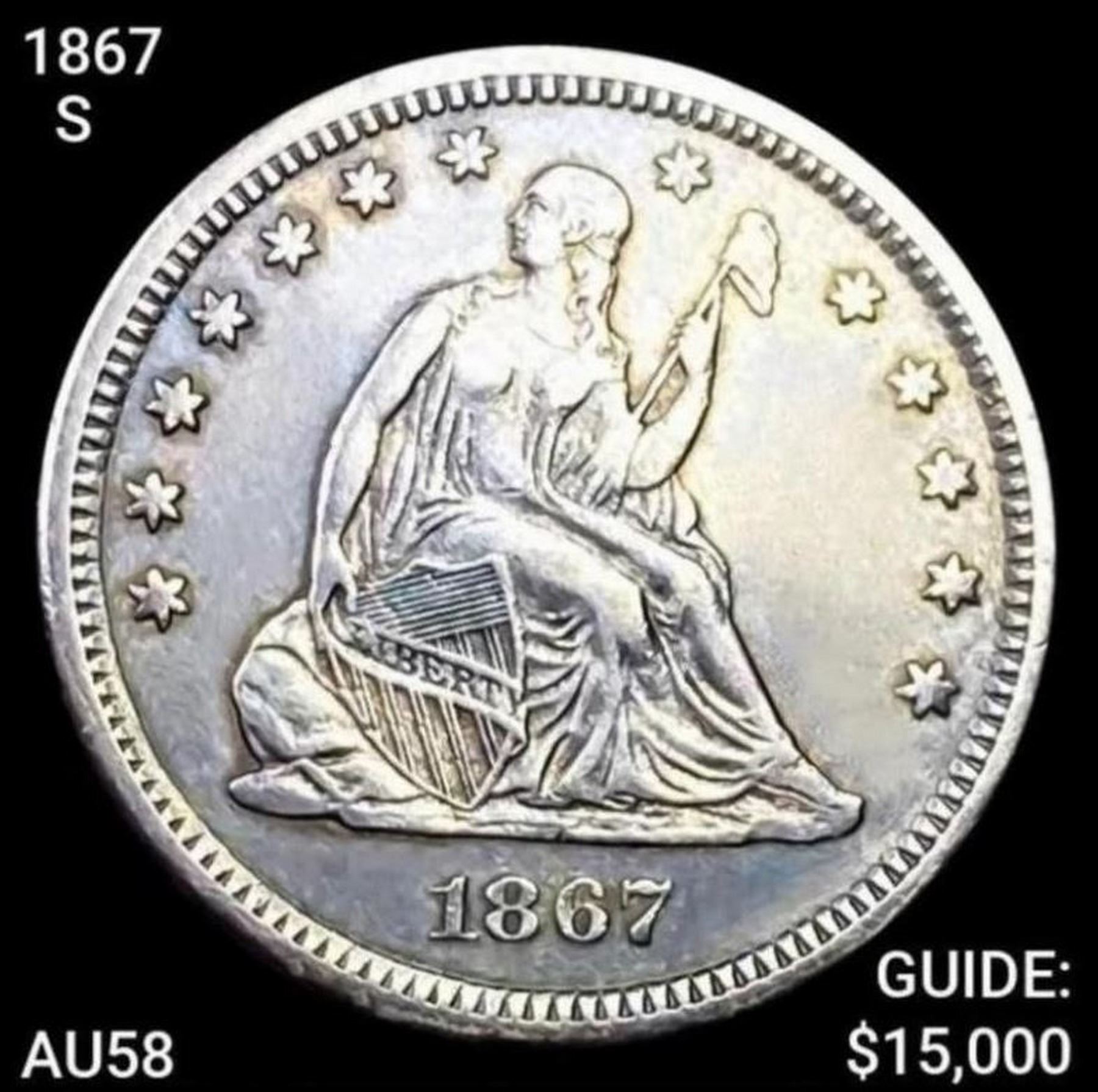 1867-S Seated Liberty Quarter CHOICE AU