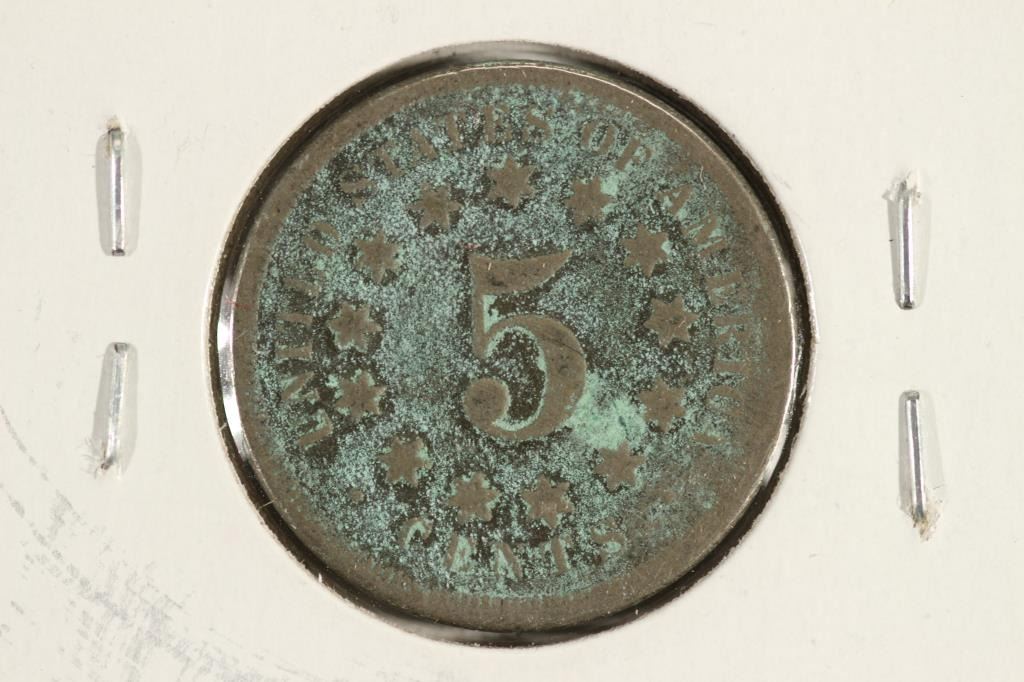 1867 SHIELD NICKEL WITH VIRDIGRIS